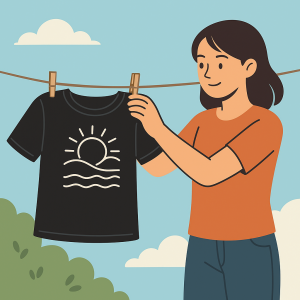 Sinar matahari langsung bisa bikin warna sablon pudar. Jemur di tempat teduh dan pastikan baju tetap dibalik bagian dalamnya. Ini juga membantu warna kain tetap awet.